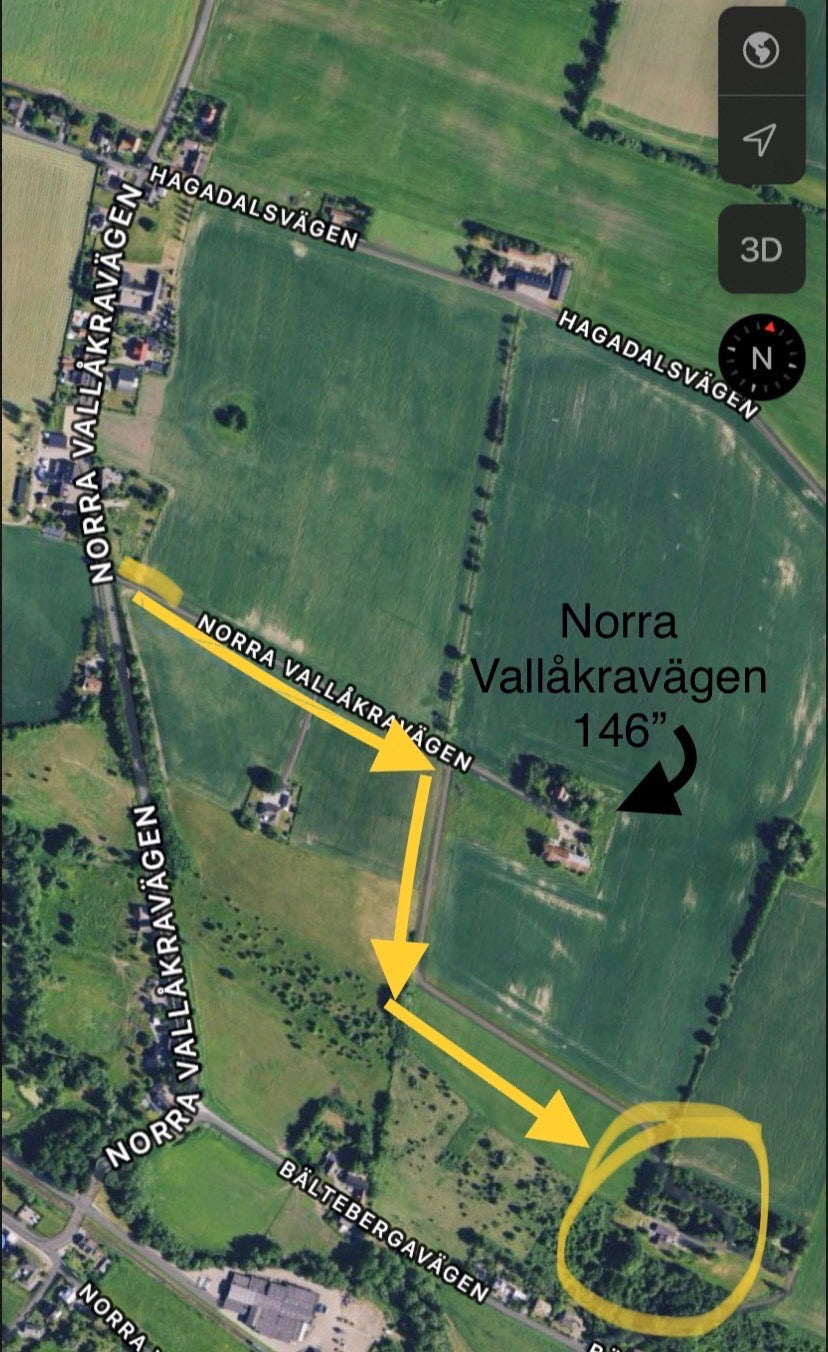 Du hittar till mig genom att sätta på GPSen till Norra Vallåkravägen 146, Helsingborg och sedan följa vägen enligt bilden.